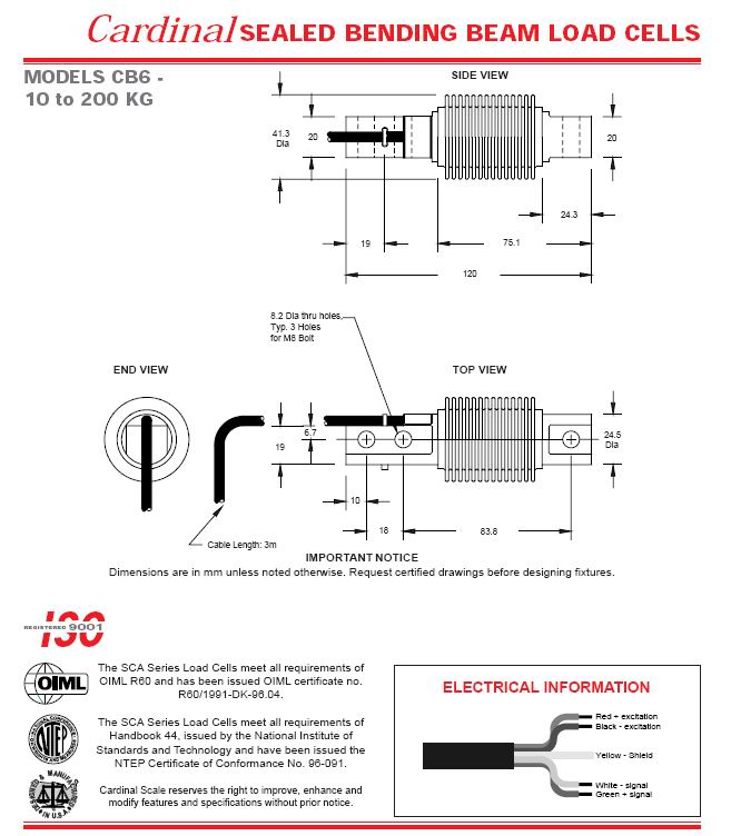 | 產品名稱:Csrdinal CB6 波紋管稱重傳感器(load cells) |