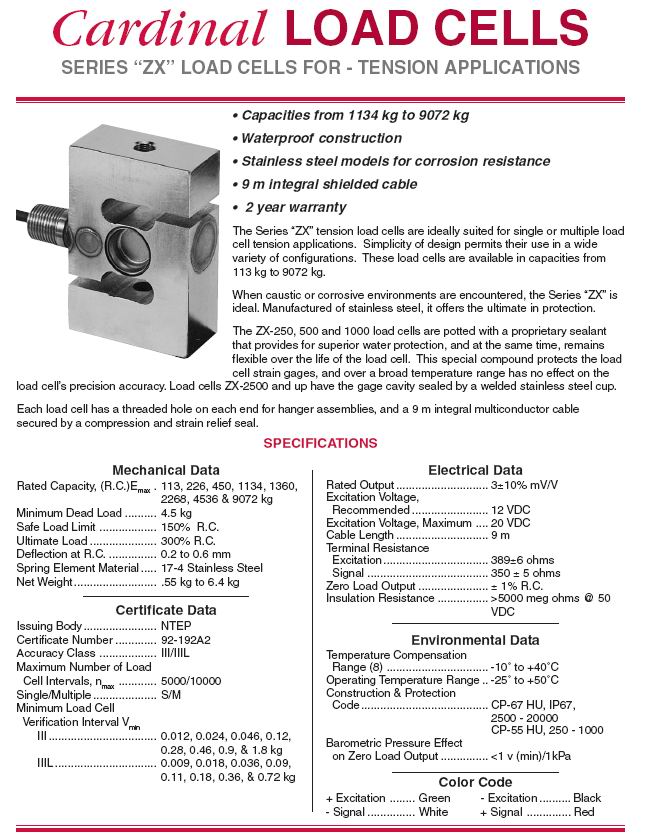 | 產品名稱:Cardinal ZX S型稱重傳感器(load cells) |