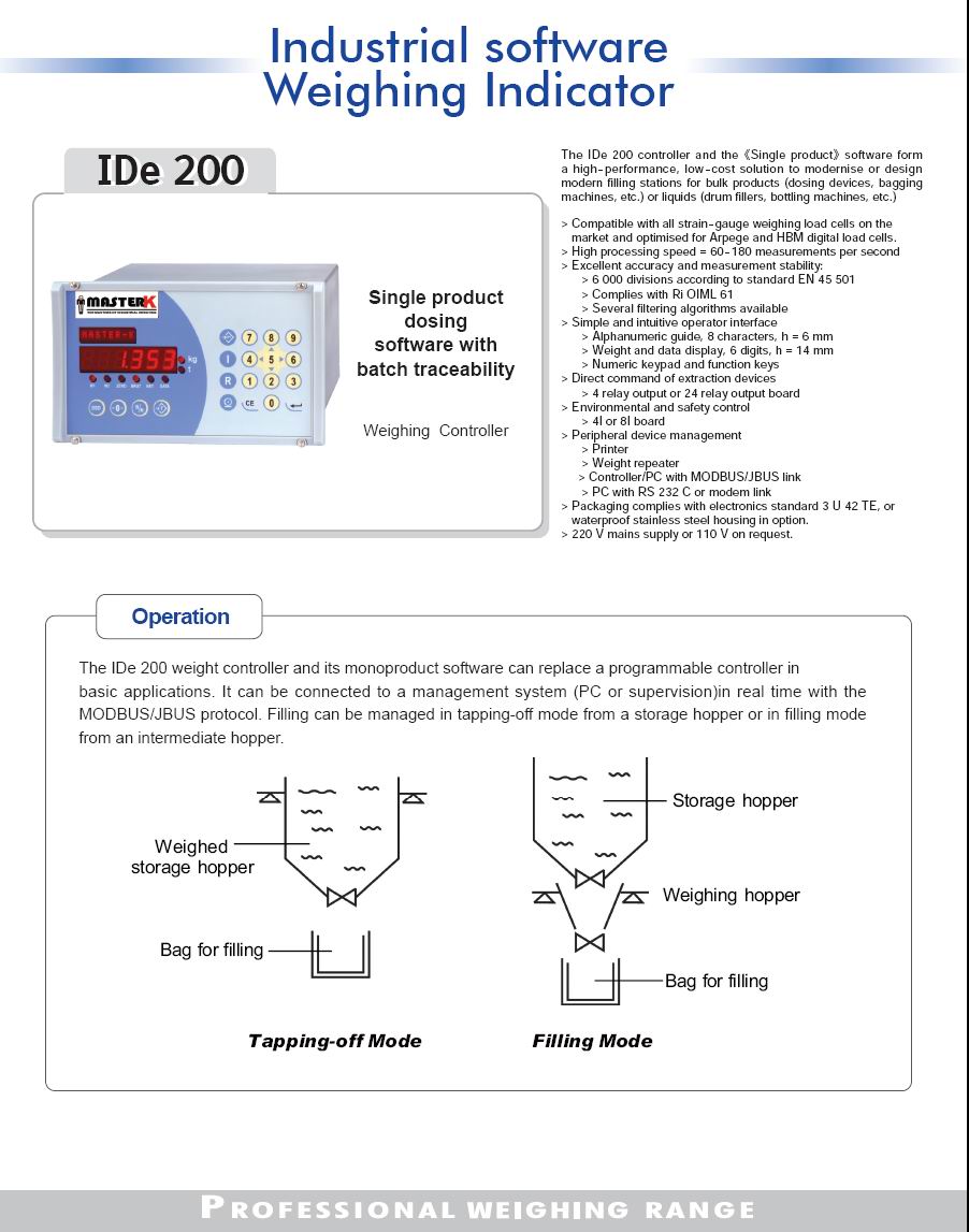 產(chǎn)品名稱(chēng):法國(guó)master-K稱(chēng)重傳感器,稱(chēng)重顯示儀表IDe200,顯示儀表IDe200,IDe200