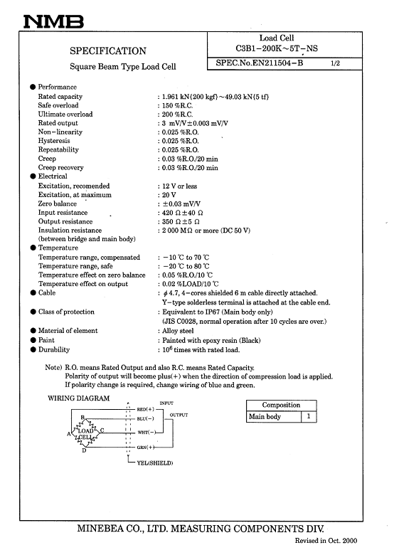 C3B1 NMB稱重傳感器(load cells)