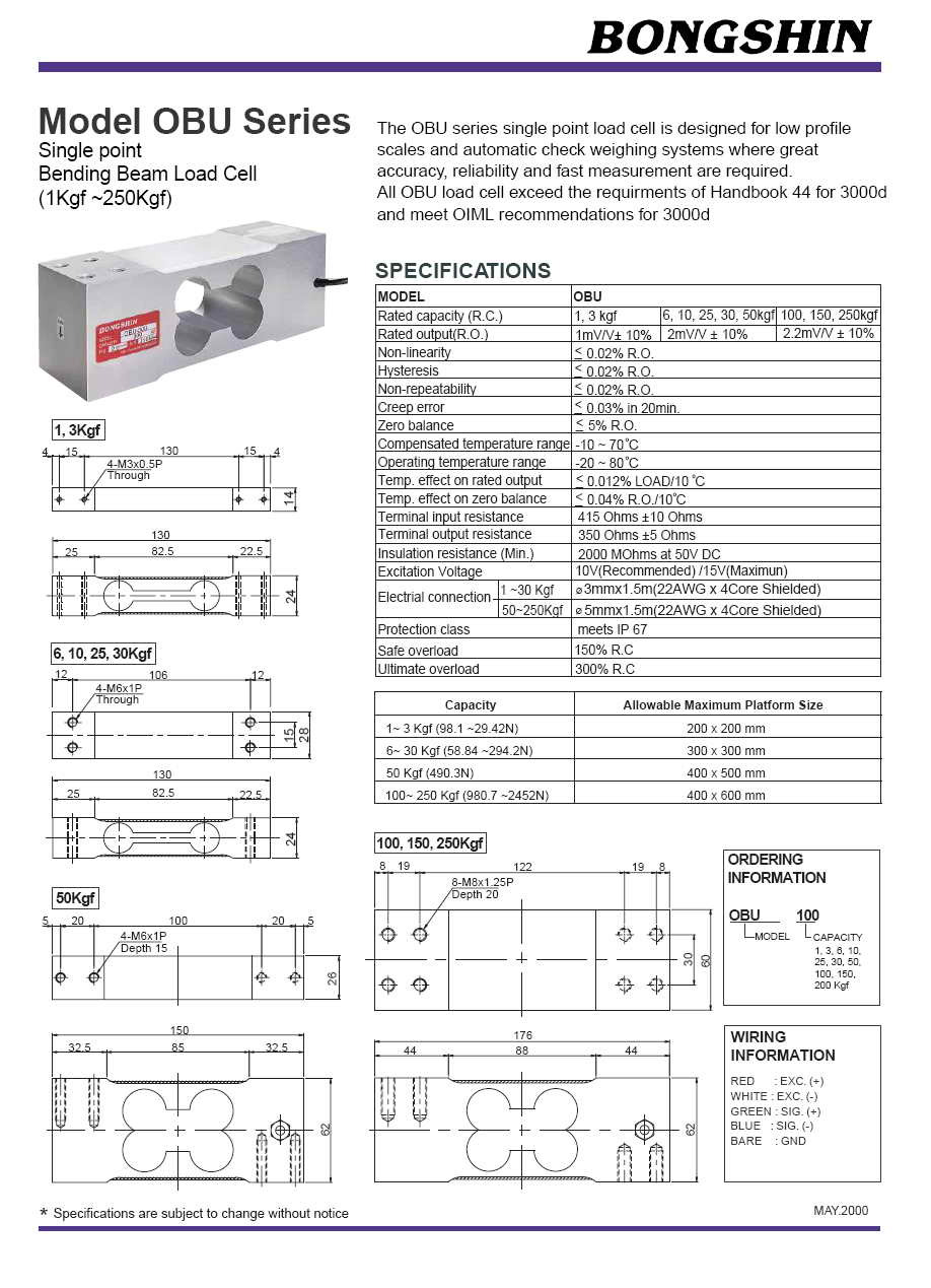 | 產(chǎn)品名稱:OBU 單點(diǎn)式稱重傳感器(load cell) |
