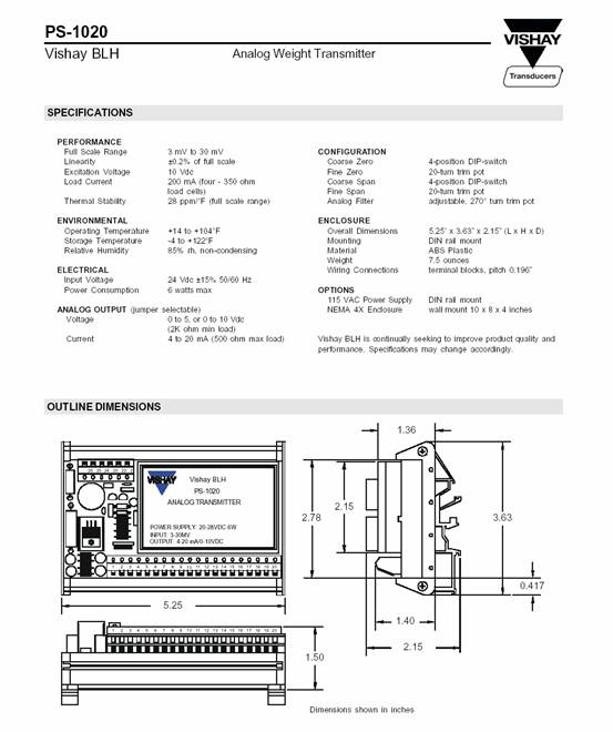 PS-1020 模擬稱重變送器(weight transmitter)
