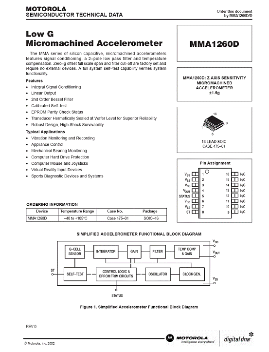 | 產(chǎn)品名稱:MMA1260D 加速度傳感器(accelerometer) |