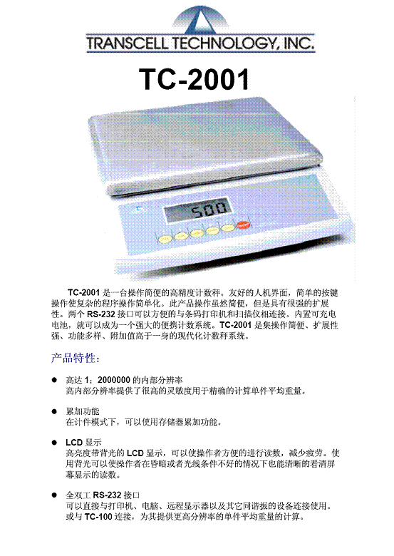 | 產(chǎn)品名稱:Transcell TC-2001 計(jì)數(shù)秤(scales) |