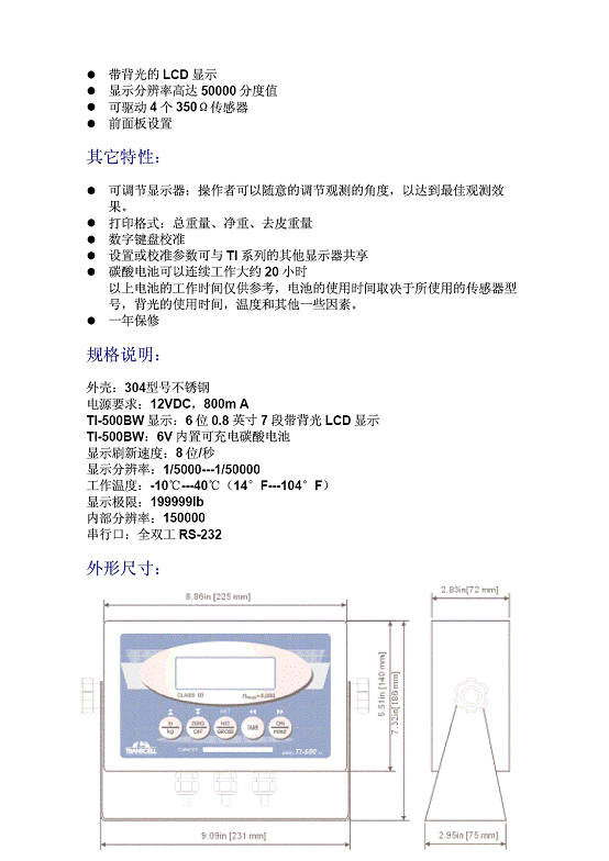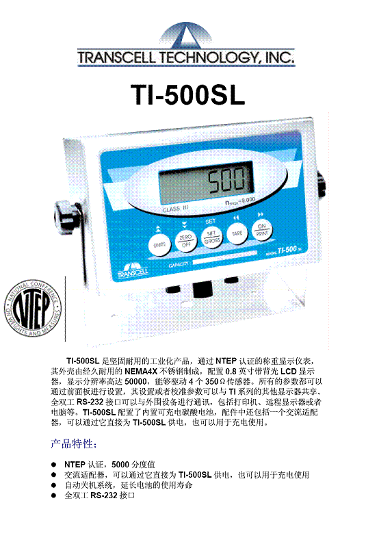 | 產品名稱:Transcell T1-500SL 耐用顯示儀表(Indicator) |