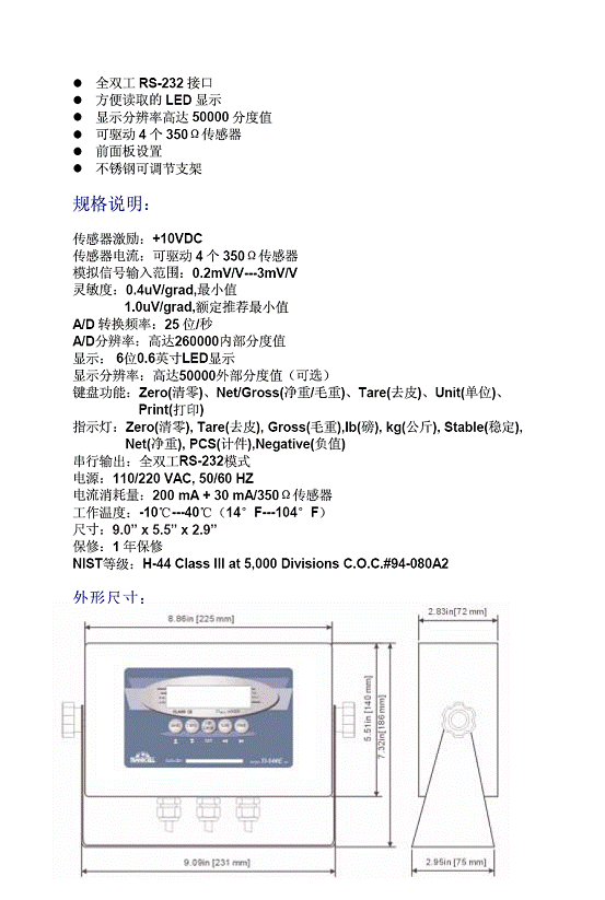 | 產品名稱:Transcell T1-500E-SS 耐用稱重顯示儀表(Indicator) |