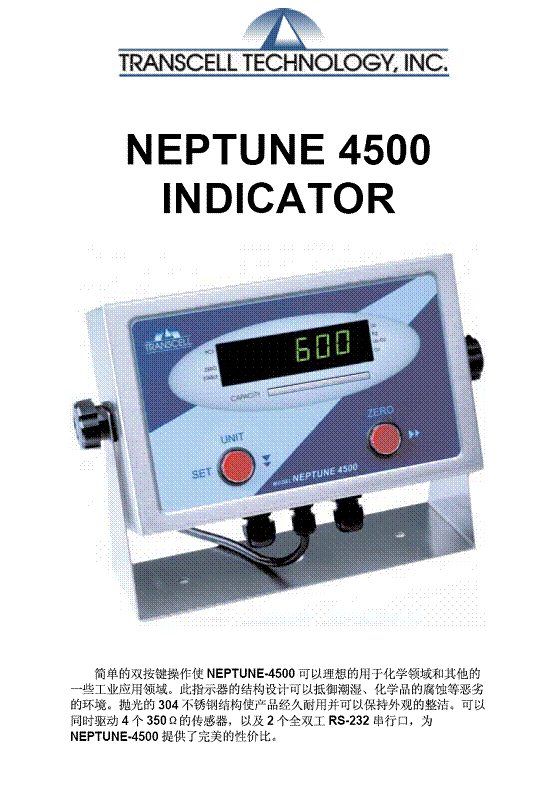 | 產品名稱:Transcell NEPTUNE-4500 顯示儀表(indicator) |