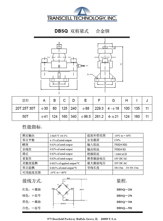 Transcell DBSQ 橋式稱重傳感器(load cells)