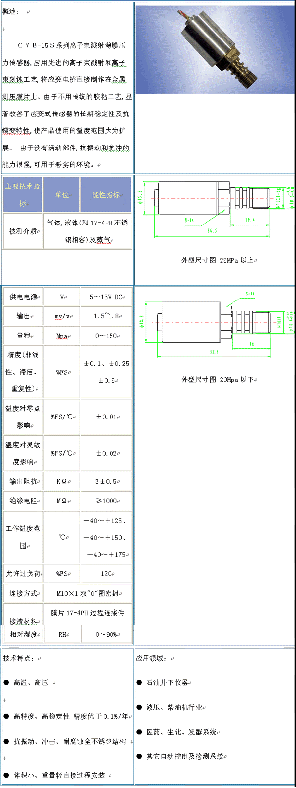 | 產(chǎn)品名稱:CYB-15S 濺射薄膜壓力傳感器(pressure sensor) |